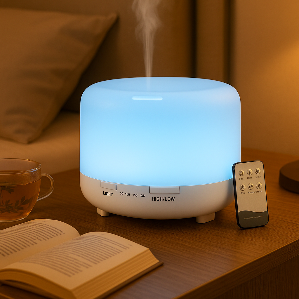 Profitez d’une atmosphère apaisante à la maison ou au bureau grâce à ce diffuseur ultrasonique 2 en 1 : humidificateur et aromathérapie 🌿. Compact mais puissant, il couvre jusqu’à 30㎡, diffuse une brume fine et silencieuse (<36 dB) et s’utilise facilement grâce à sa télécommande.